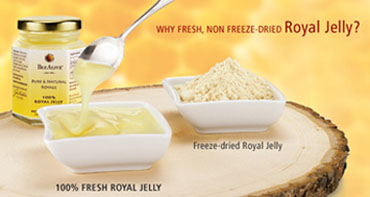 One of the reasons Royal Jelly is so precious is it cannot be duplicated in a laboratory; it can only be hand-harvested from beehives in very minute amounts. In more ancient times, Royal Jelly’s use was limited to people of royalty or great wealth, because it simply wasn’t available. While Royal Jelly is no less precious today, it is more widely available because of advances in the science of beekeeping and cultivation of Royal Jelly. At BeeAlive®, we only use fresh Royal Jelly in our products — straight from the beehive — it’s not freeze-dried like most other brands. We believe that using fresh Royal Jelly makes our products superior.